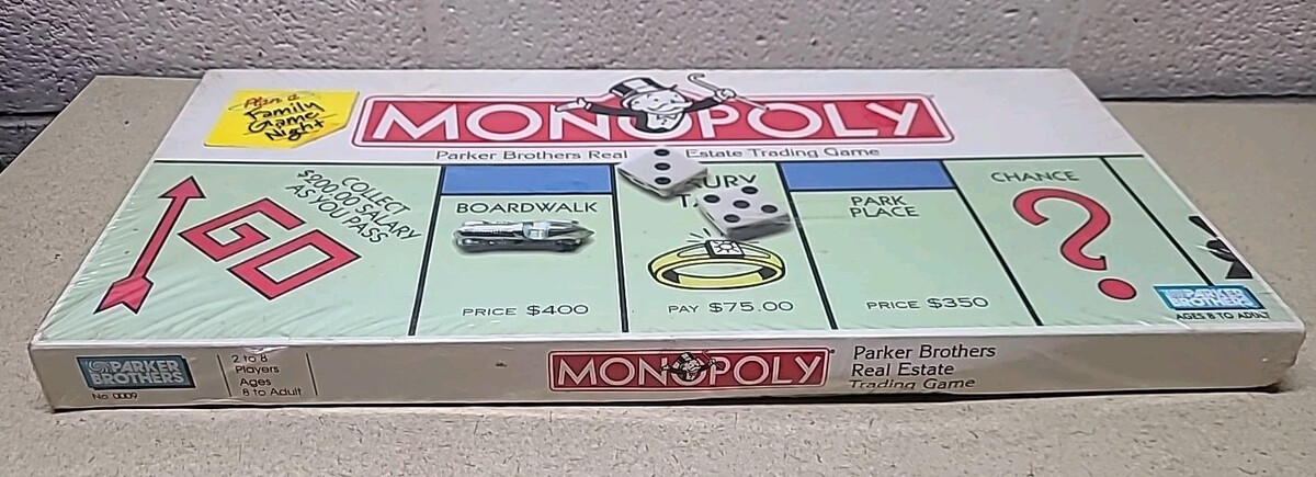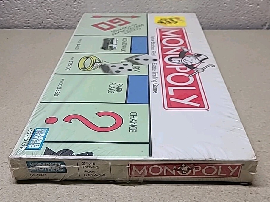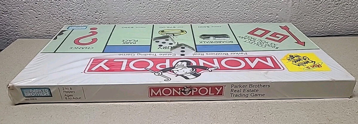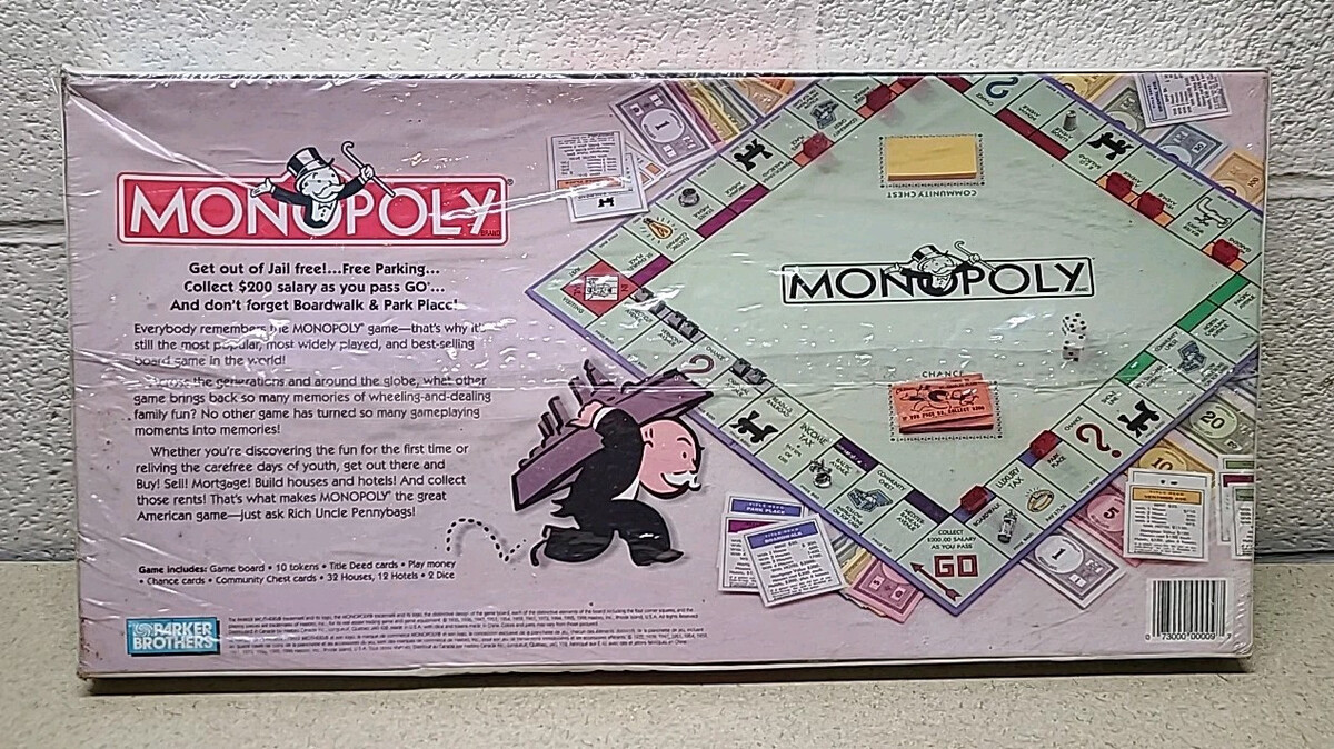 Experience the classic thrill of buying, selling, and trading properties with the vintage 1996 Monopoly Board Game by Parker Brothers. This sealed, never-in-box (NISB) edition No. 0009 from 1996 invites you to immerse yourself in the timeless strategy of Monopoly, perfect for 2 to 8 players of ages 8 and up. Whether you're a collector or a game enthusiast, this complete set promises to deliver hours of engaging gameplay.