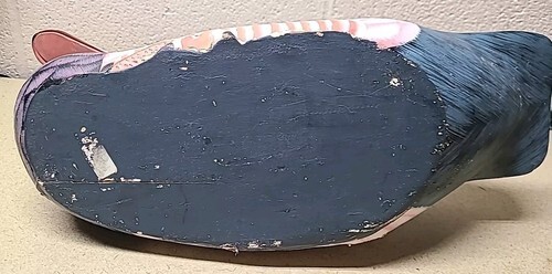 This large wooden painted duck decoy is a beautiful addition to any home decor. Its vintage design adds a touch of elegance and sophistication to any room. Measuring at 19 inches, it is the perfect size to serve as a focal point for your space.