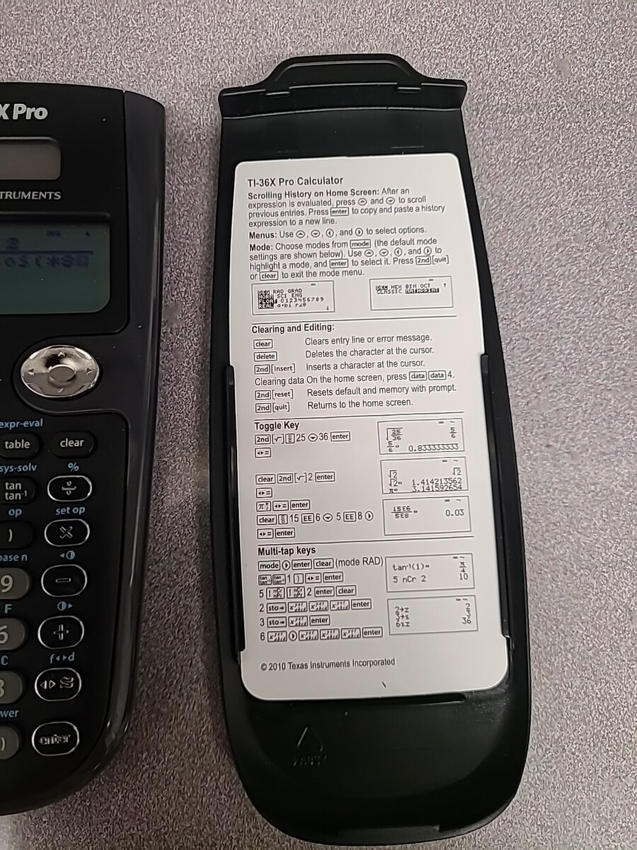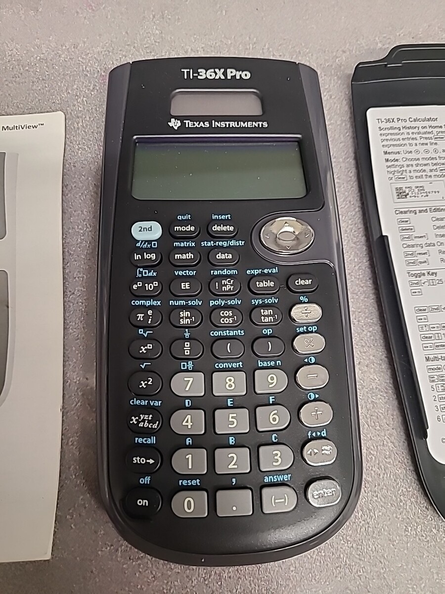 The Texas Instruments TI-36X Pro Scientific Calculator is a handheld device with a regular-sized display and regular-sized keys, making it easy to use for various calculations. This model, known for its reliability and accuracy, is perfect for students, professionals, and anyone in need of precise scientific calculations. The calculator comes with a protective cover to keep it in excellent used condition, ensuring longevity and functionality for years to come. Ideal for office or educational settings, the TI-36X Pro calculator is a valuable tool for solving complex equations with ease.