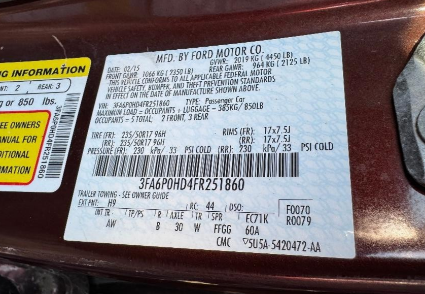 *2013 THRU 2016 FORD FUSION LEFT FRONT OEM USED HEADLIGHT. PART NUMBER DS7Z-13008-B. PULL FROM THE PICTURED 15 FUSION.*