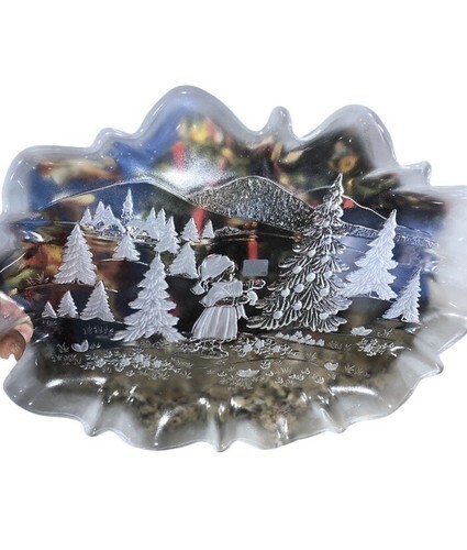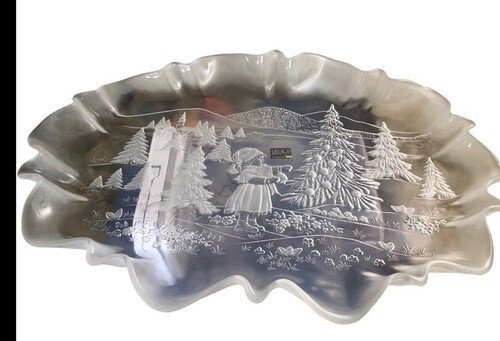 Mikasa Christmas Tray Frosted Glass In Original Box Christmas Trees Floral