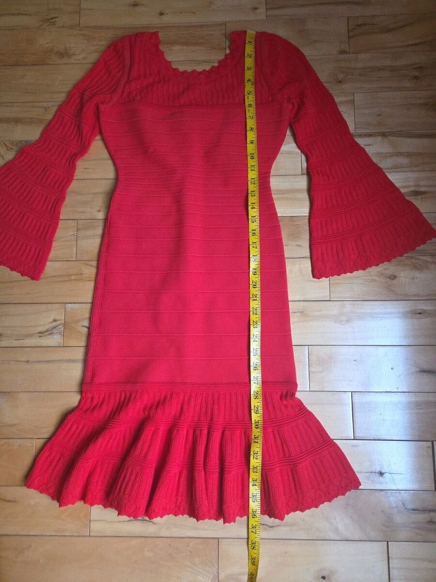 Herve Leger Fluted 3/4 Sleeve Flare Hem Red and 49 similar items