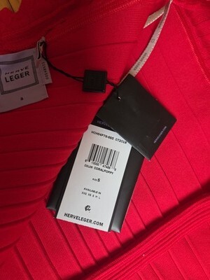 Herve Leger Fluted 3/4 Sleeve Flare Hem Red Dress Size Small New with Tags
