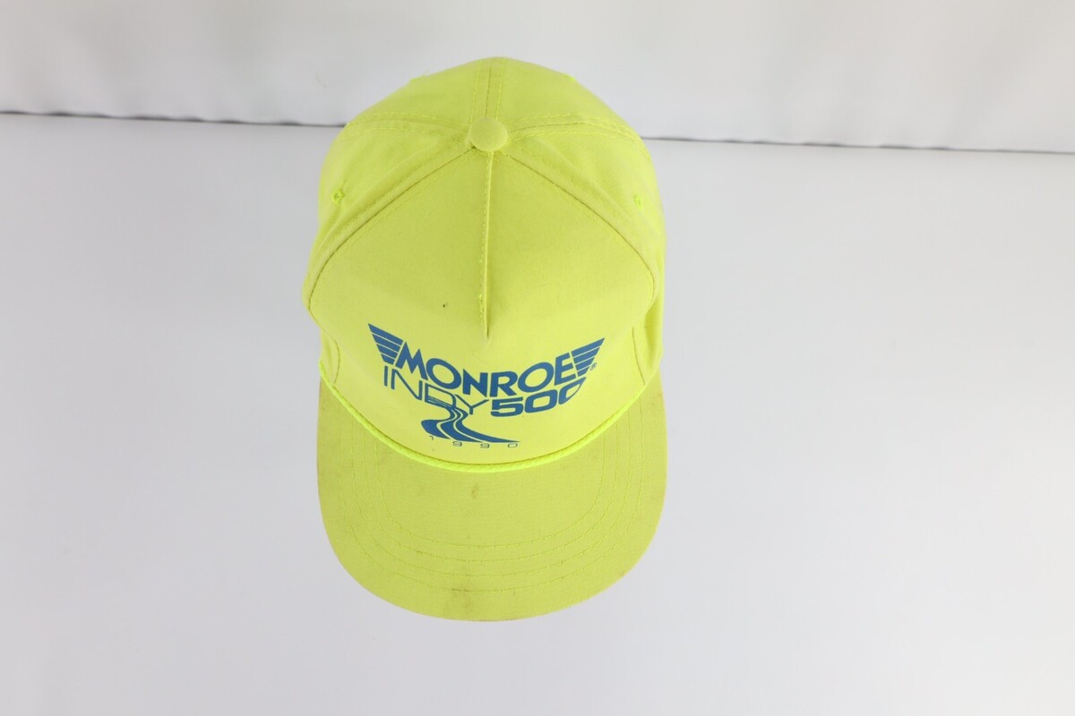 Vintage 90s Distressed Monroe Indy 500 1990 Spell Out Roped Snapback Hat Volt