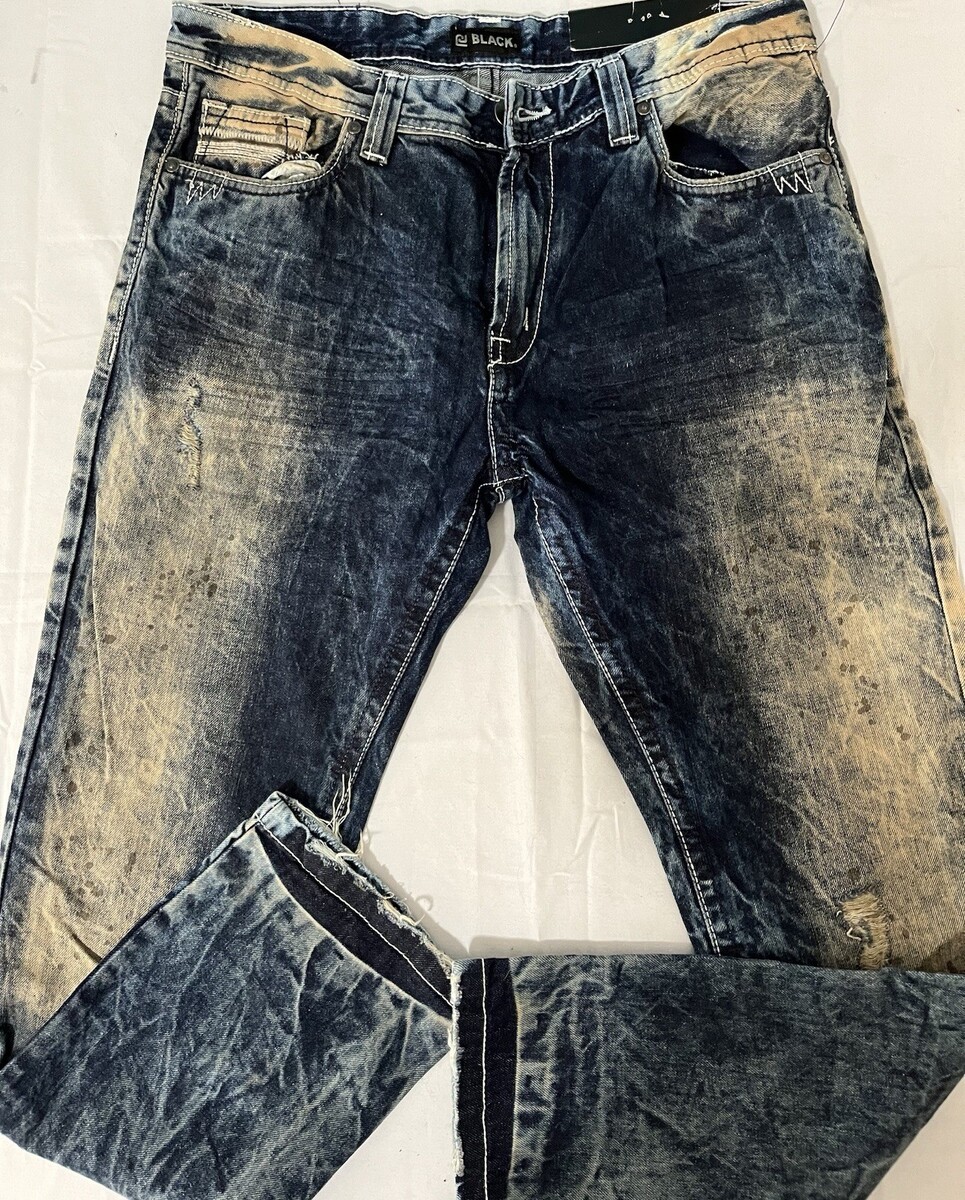 CJ Black NWT Premium Jeans Mens 34x30 Slim Straight Flex Zippers Blue Acid Wash