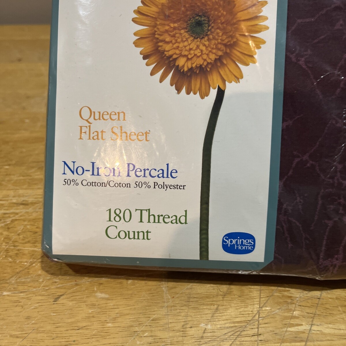 Vtg Springmaid Queen Flat Sheet Amalfi Burgundy Print 180 TC No Iron Percale NEW