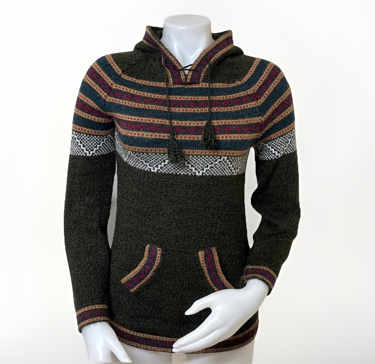 Alpaca Hoodie Womens S Pullover Sweater Hooded Tribal Wool Handmade Ecuador
