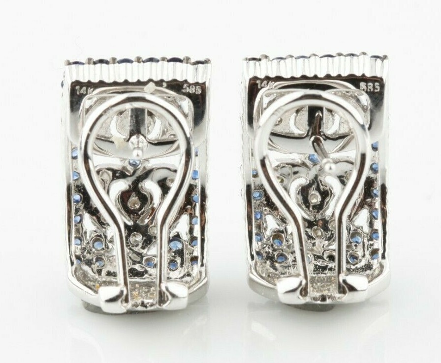 14k White Gold Diamond and Sapphire Plaque Huggie Earrings with Antiqued Accents All shipments include insurance and delivery confirmation or signature confirmation. Local Pick-up is available in our showroom. All international packages will have the required customs declaration and value of order. Your continuing satisfaction is very important to us. We offer a 30 day money back return policy. If you are unhappy with your purchase for any reason, please notify us so that we can begin the returns process. All items for sale are available for viewing at our Southern California showroom. We would like to thank all of our loyal customers for their continued support. If you have any questions, comments or concerns, please click "Ask a question" below, and we will respond as soon as possible