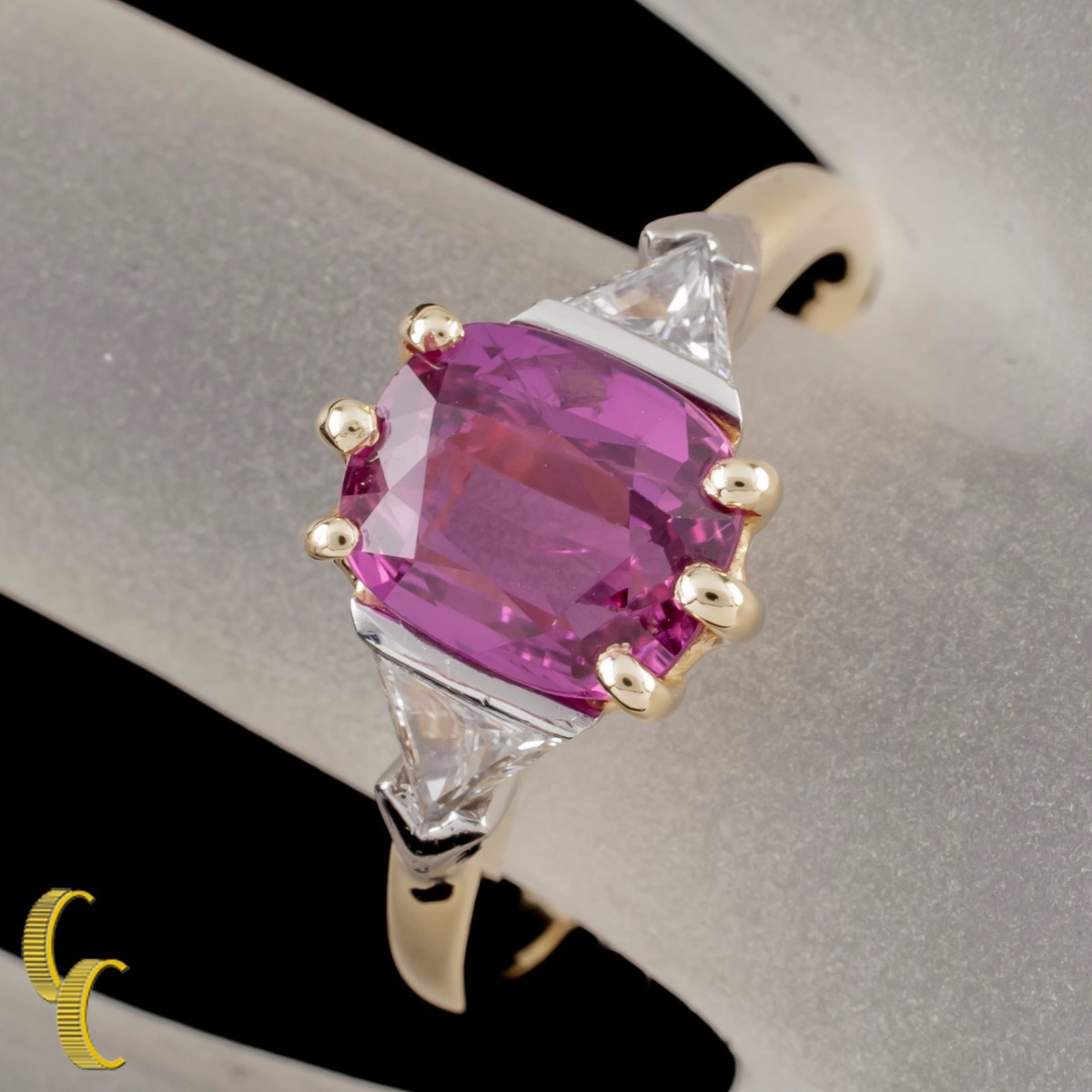 1.50 Carat Ruby with Trillion Diamond Accent 18k Yellow Gold Ring Size 5.5
