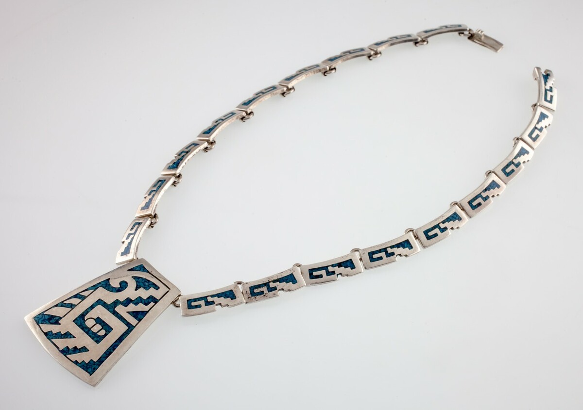 Sterling Silver Mexico Turquoise Chip Inlay Chain Necklace Gorgeous! All shipments include insurance and delivery confirmation or signature confirmation. Local Pick-up is available in our showroom. All international packages will have the required customs declaration and value of order. Your continuing satisfaction is very important to us. We offer a 30 day money back return policy. If you are unhappy with your purchase for any reason, please notify us so that we can begin the returns process. All items for sale are available for viewing at our Southern California showroom. We would like to thank all of our loyal customers for their continued support. If you have any questions, comments or concerns, please click "Ask a question" below, and we will respond as soon as possible. Thank you.