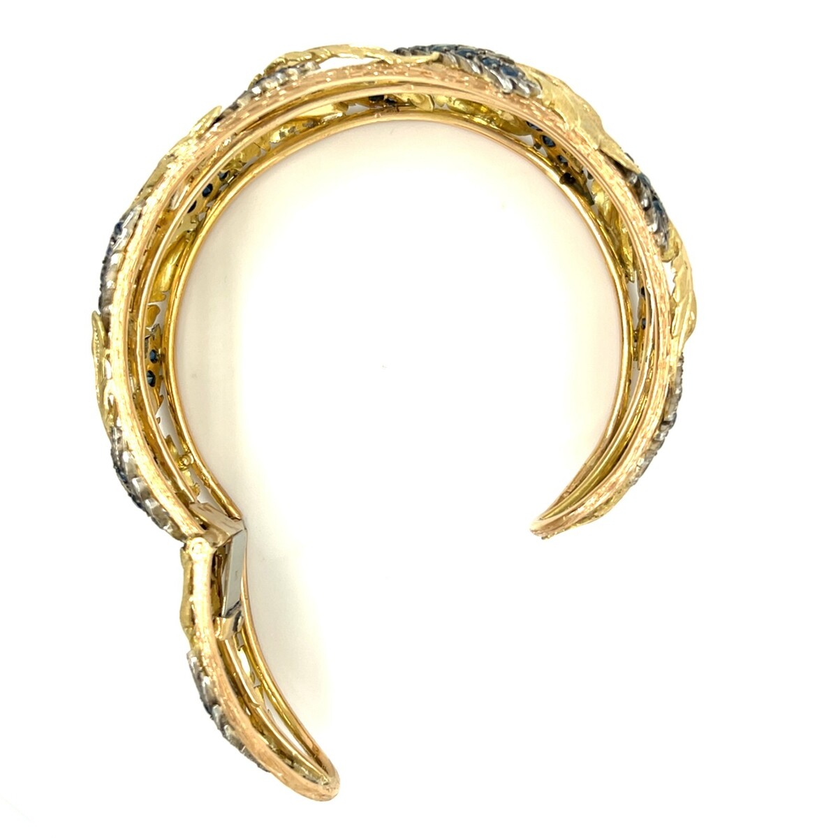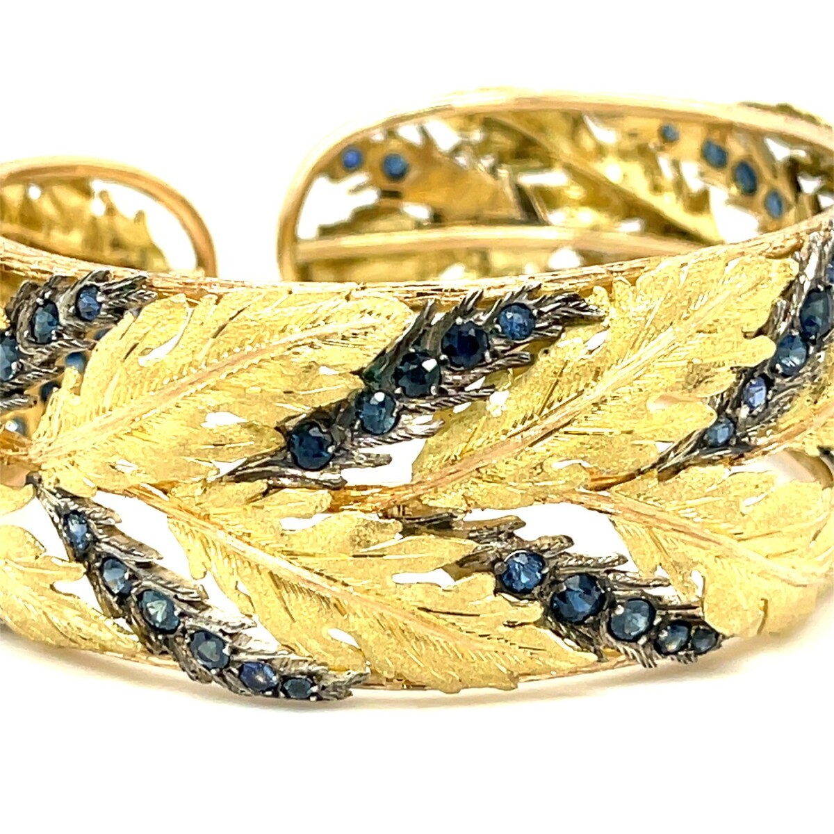 Buccellati 18k Tri-Color Gold Foliate Design Cuff W/Circulate-Cut Sapphires