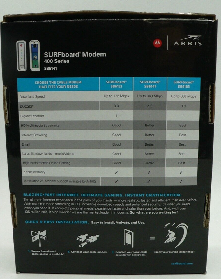 Motorola ARRIS SURFboard SB6141 DOCSIS 3.0 Cable Modem 400 Series (White) A7