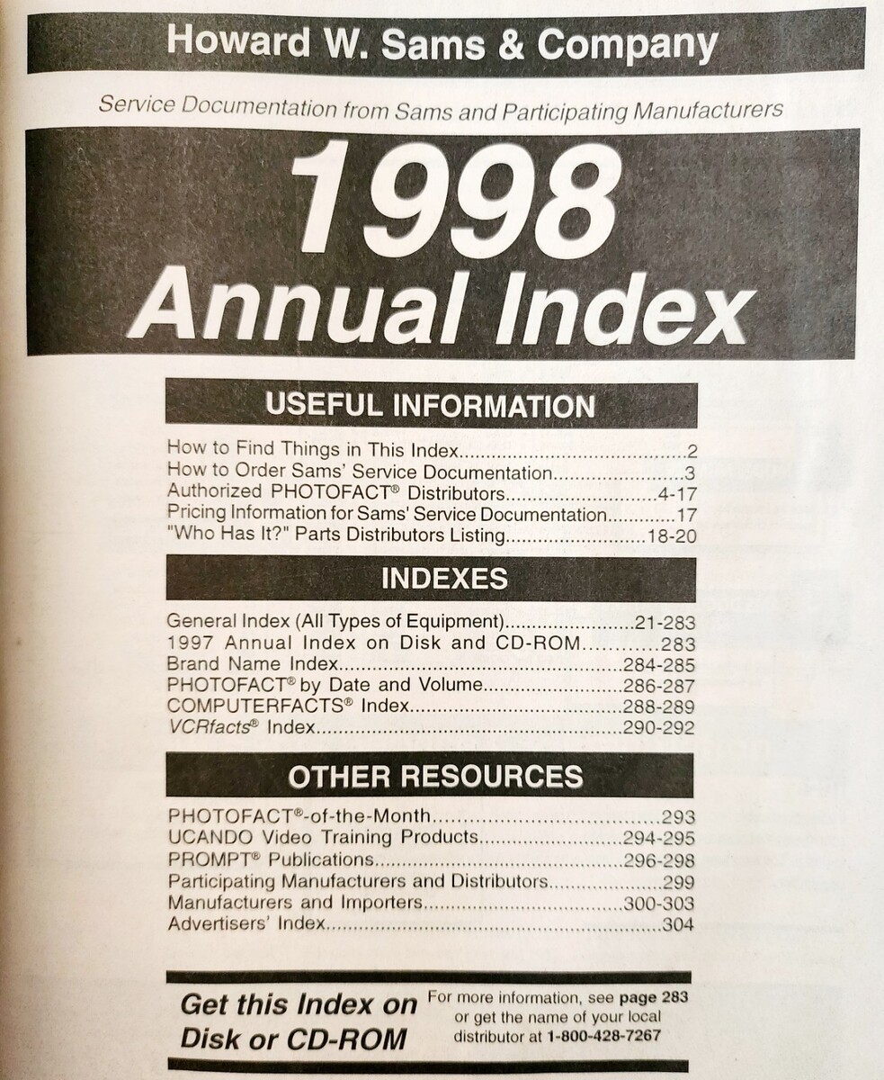 1998 Howard W. Sams Annual Index Vintage Electronics Service Data PB Book F20