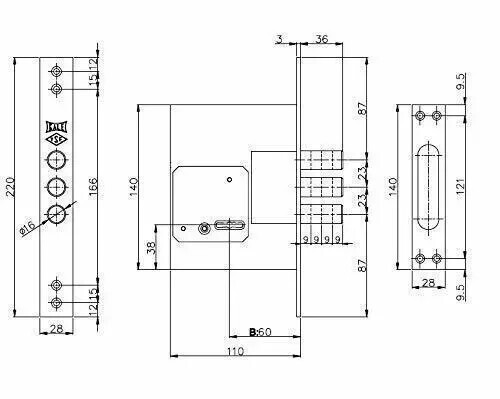 Kale Kilit 257L is a high security lock with double bitted keys. 4 turns .Drill and pick resistant . With3 keys With 2 steell ,drill resistant escutcheons (rosetes) With striking plate