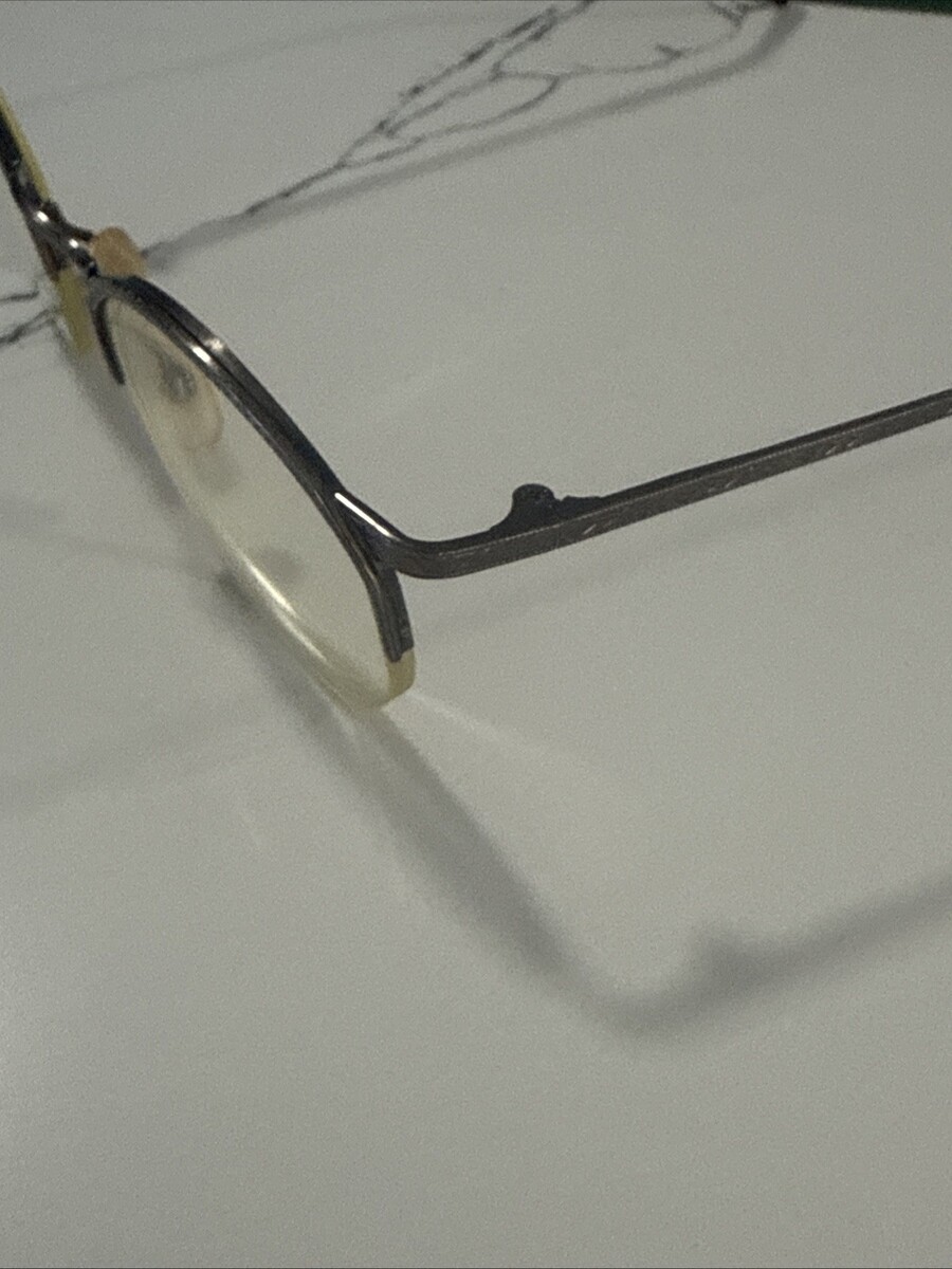 VTG 80's VERY RARE Oliver Peoples OP 57E Pewter Tooled Half Rim Eyeglasses