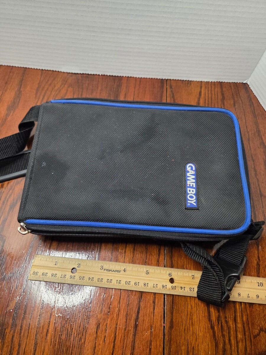 Nintendo Game Boy Carrying Case Shoulder Strap Bag Black Blue Zip Enclosure