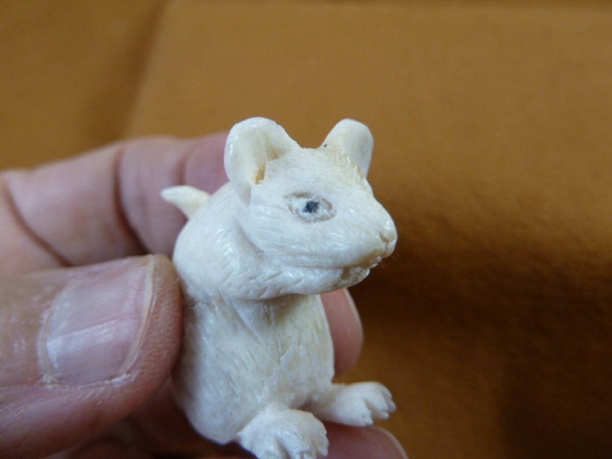 (MOU-W6) little white gray Mouse shed ANTLER figurine Bali detailed field mice