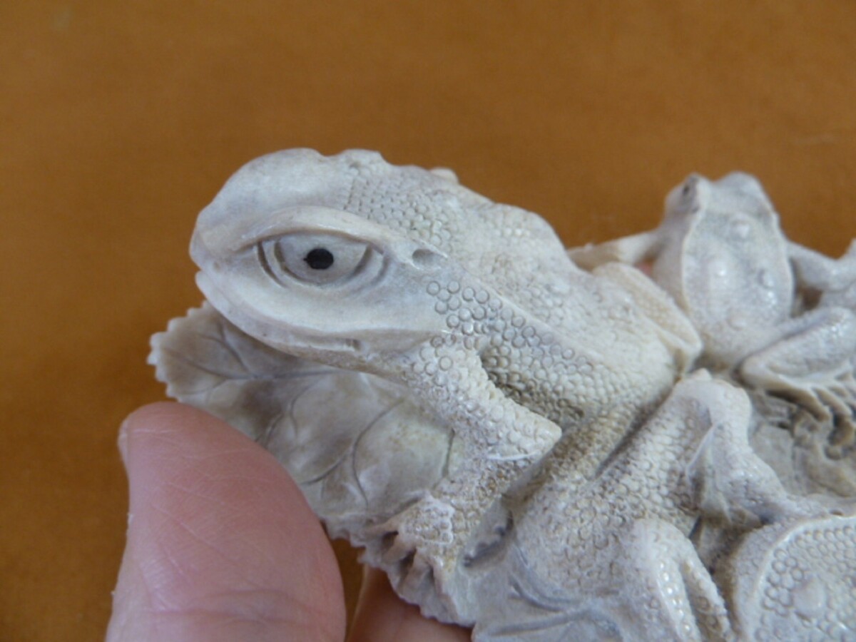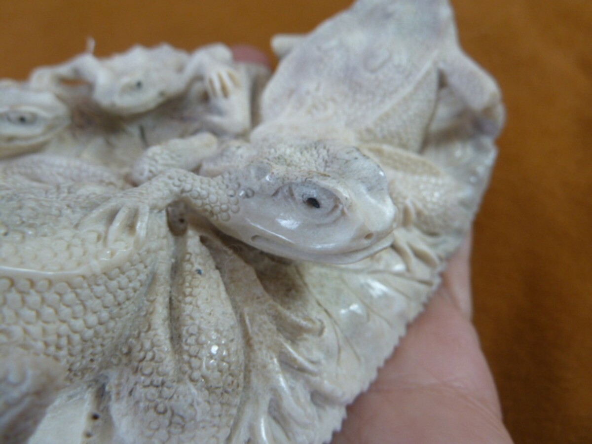 FRO-w34 Frog band of 5 little frogs lily pad shed ANTLER figurine Bali effify