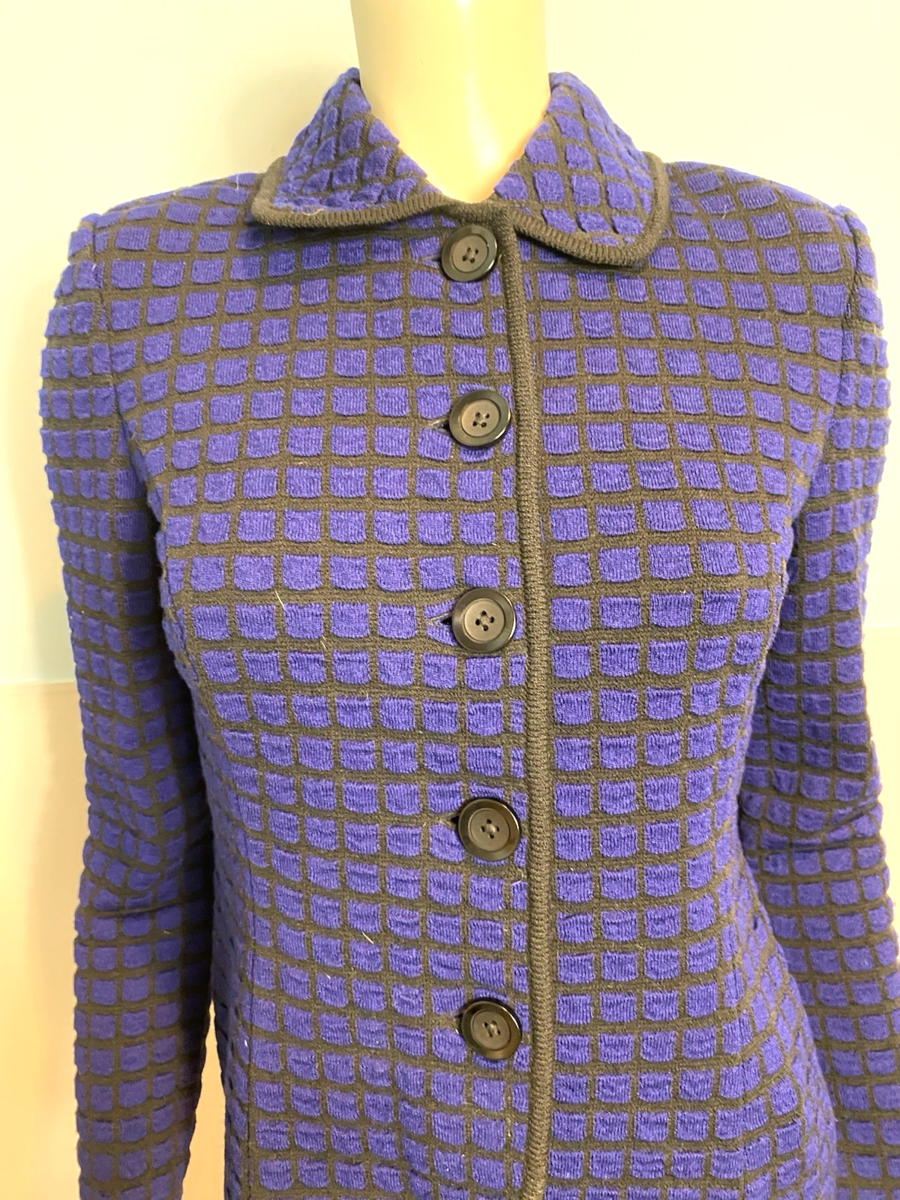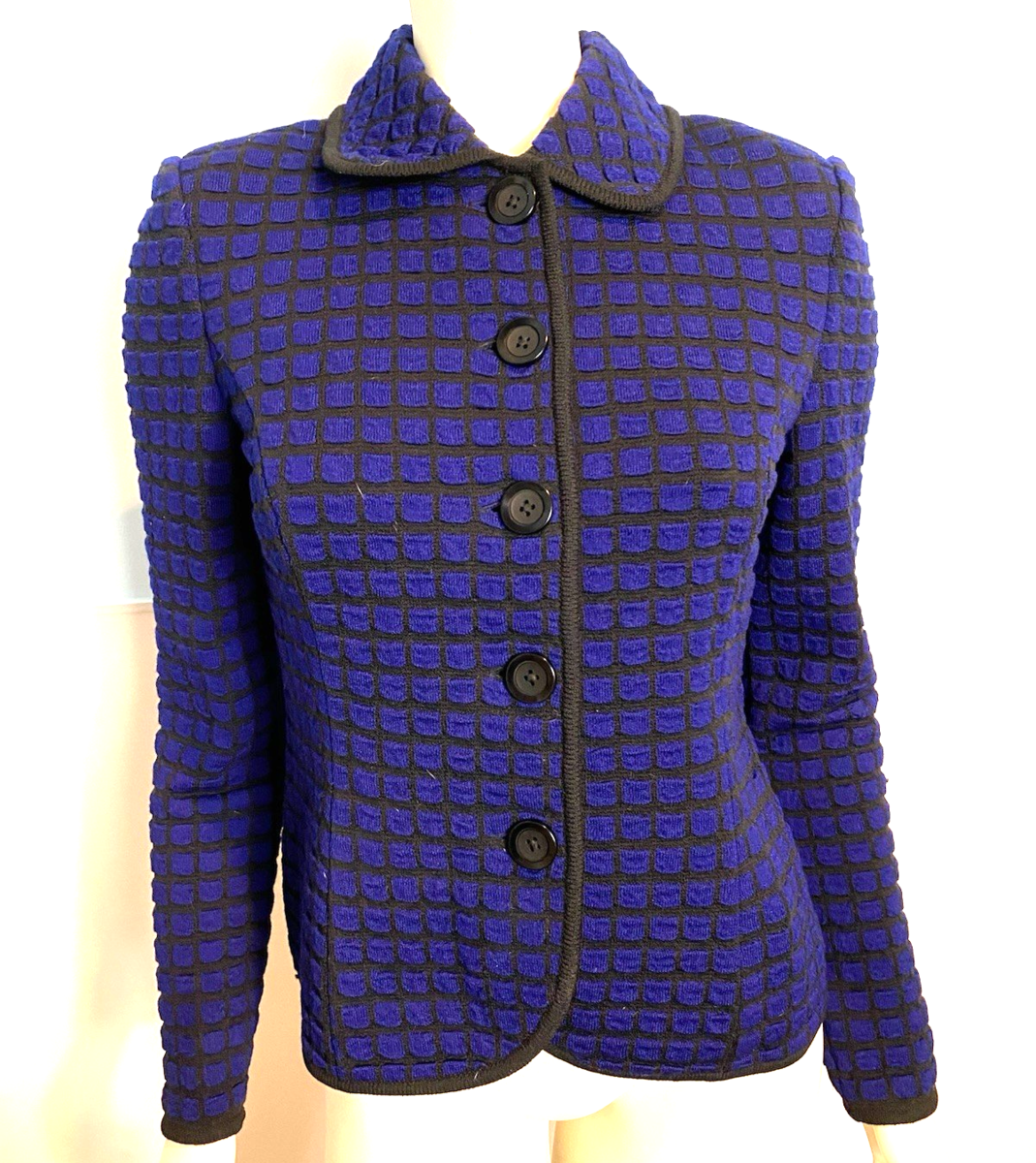 St. John Blue and Black Sweater Jacket, Women's Size 4