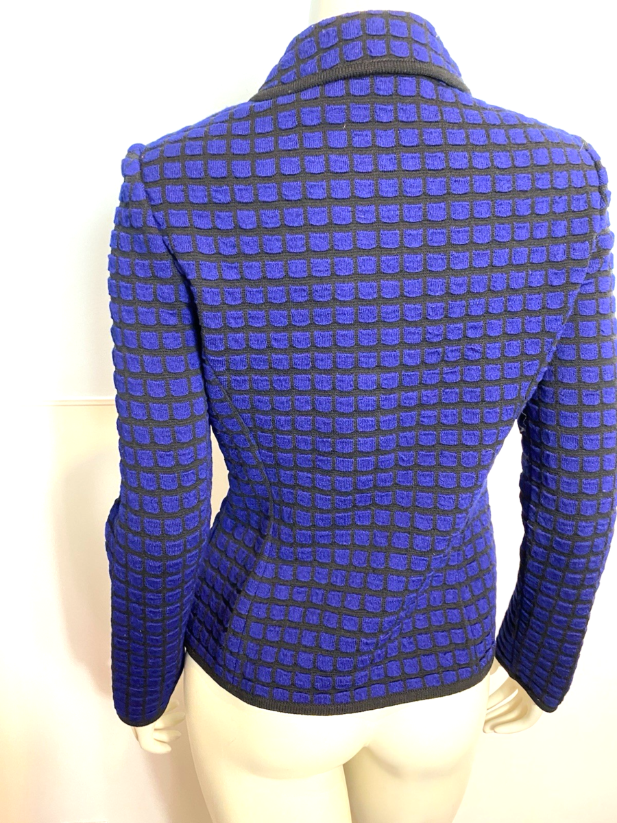 St. John Blue and Black Checked Long Sleeve Knit Jacket