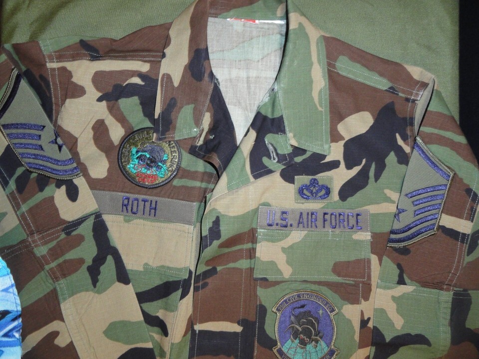 BDU WOODLAND USAF JACKET W/ PATCHES & RANK STARCHED 21ST CIVIL ENGINEER SQ LARGE