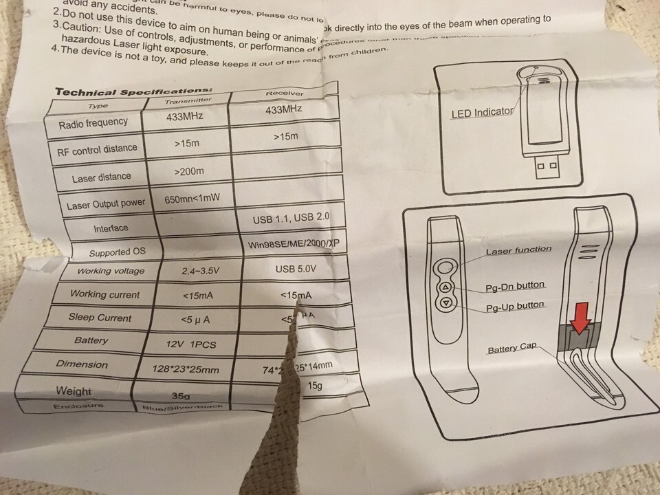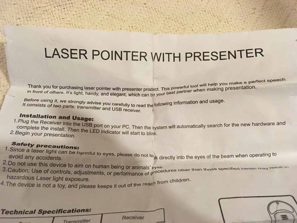 ITEM : New CEdMA Red Laser Pointer Presenter USB Dongle Receiver 12V Battery