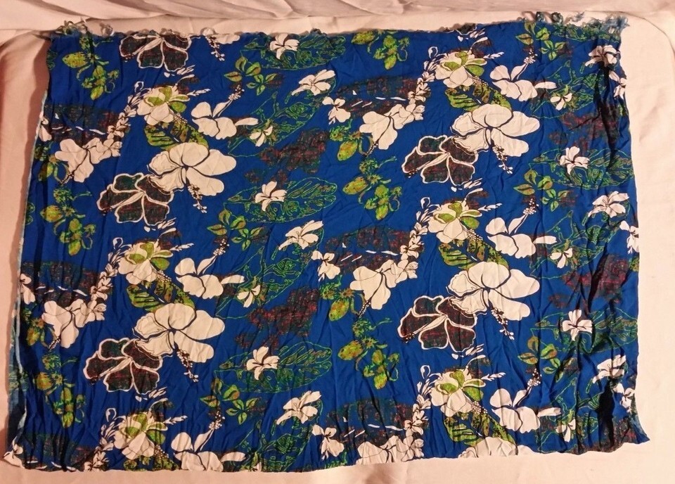 BLUE W/ ASIAN STYLE FLOWERS: 52" LONG X 80" WIDE