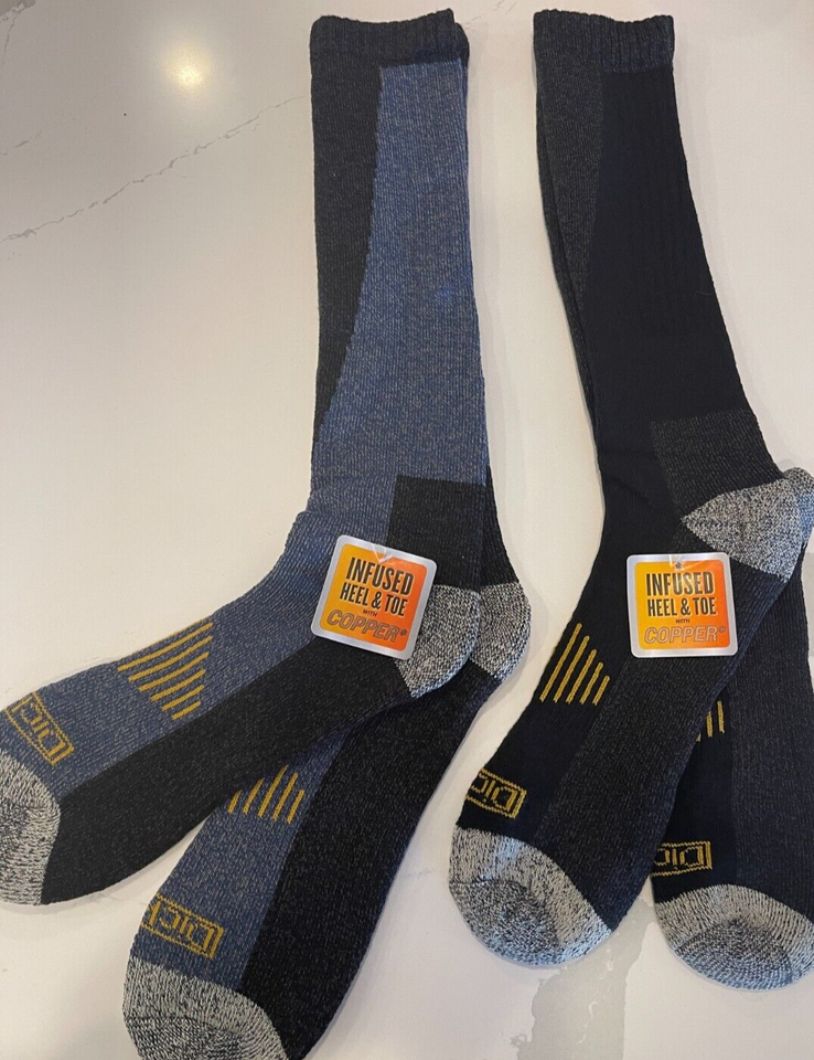 2 PAIRS DICKIES COPPER SHIN PROTECTOR BOOT LENGTH SOCKS MENS 6-12 BLUE & BLACK