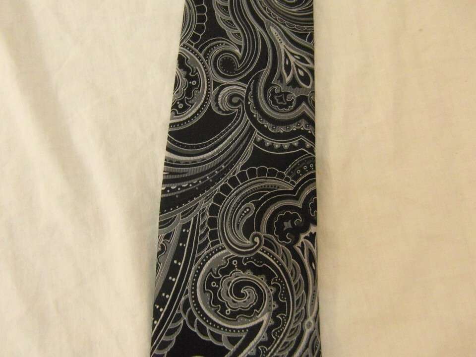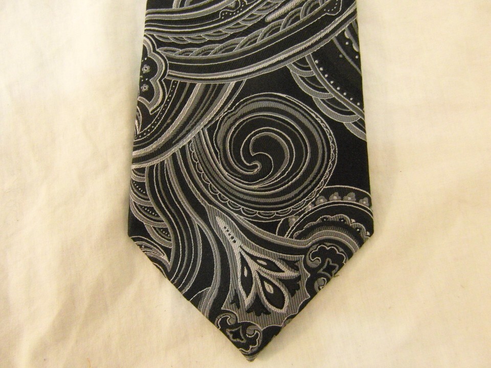 Donald J. Trump Signature Collection Silk Paisley Gray Black Tie Protector Case