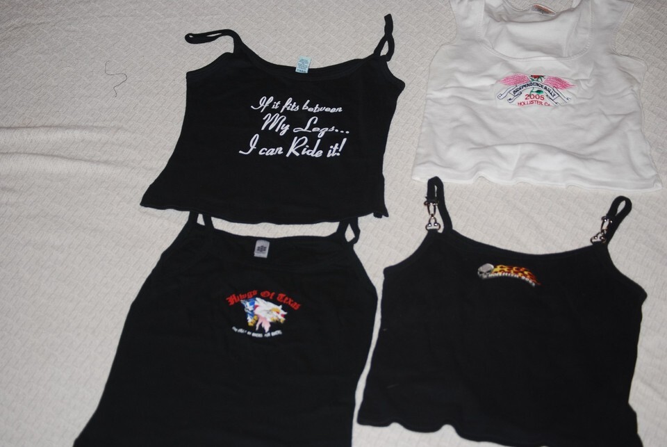 4 - Motorcycle Shirts Tank Tops Black White Large Low Cut SLEEVELESS Shirts