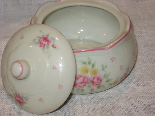 VTG Vanity Trinket Dish w/Lid-Floral-Porcelain-Japan-1950's