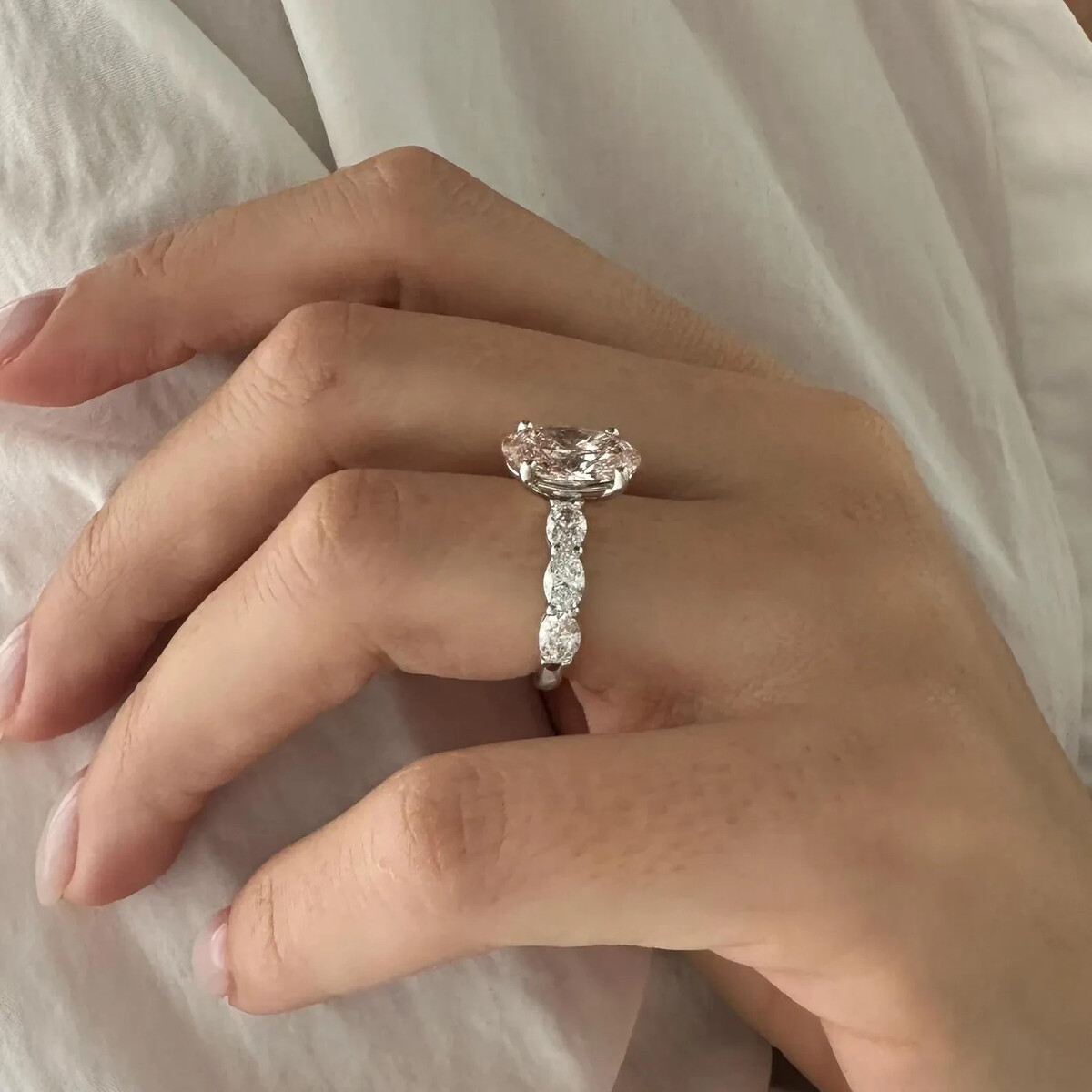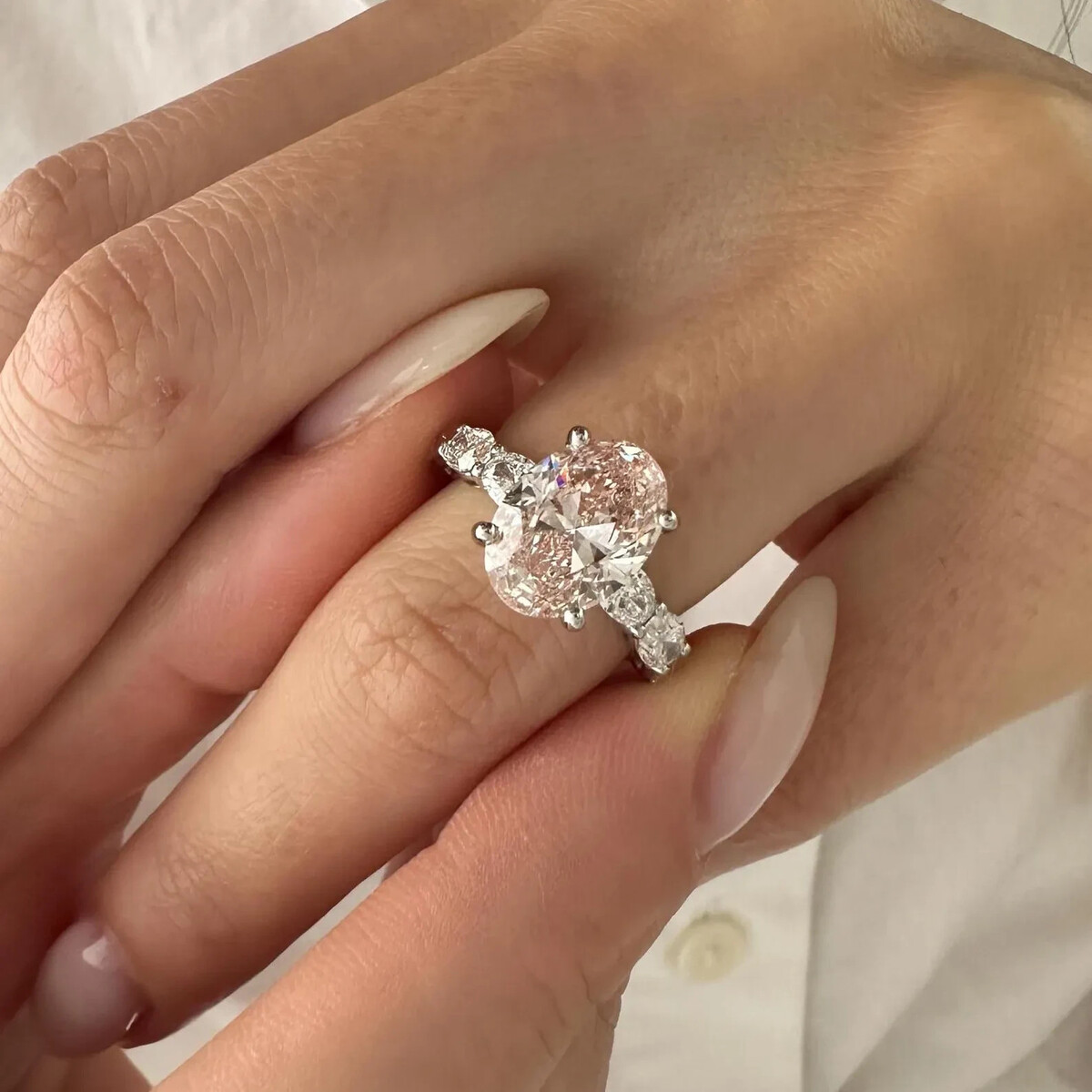 3 Ct Oval Fancy Intense Pink Lab Grown Diamond Unique White Gold Engagement Ring