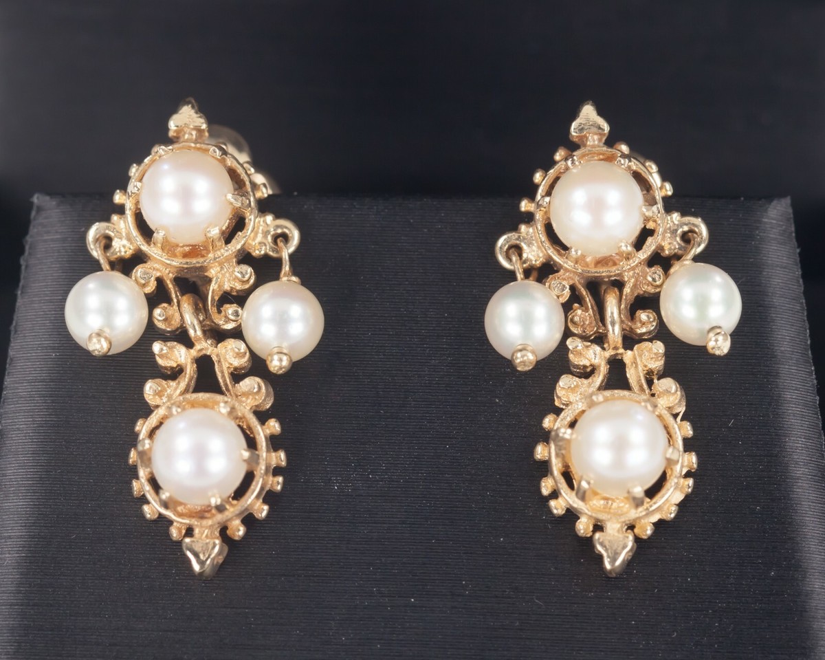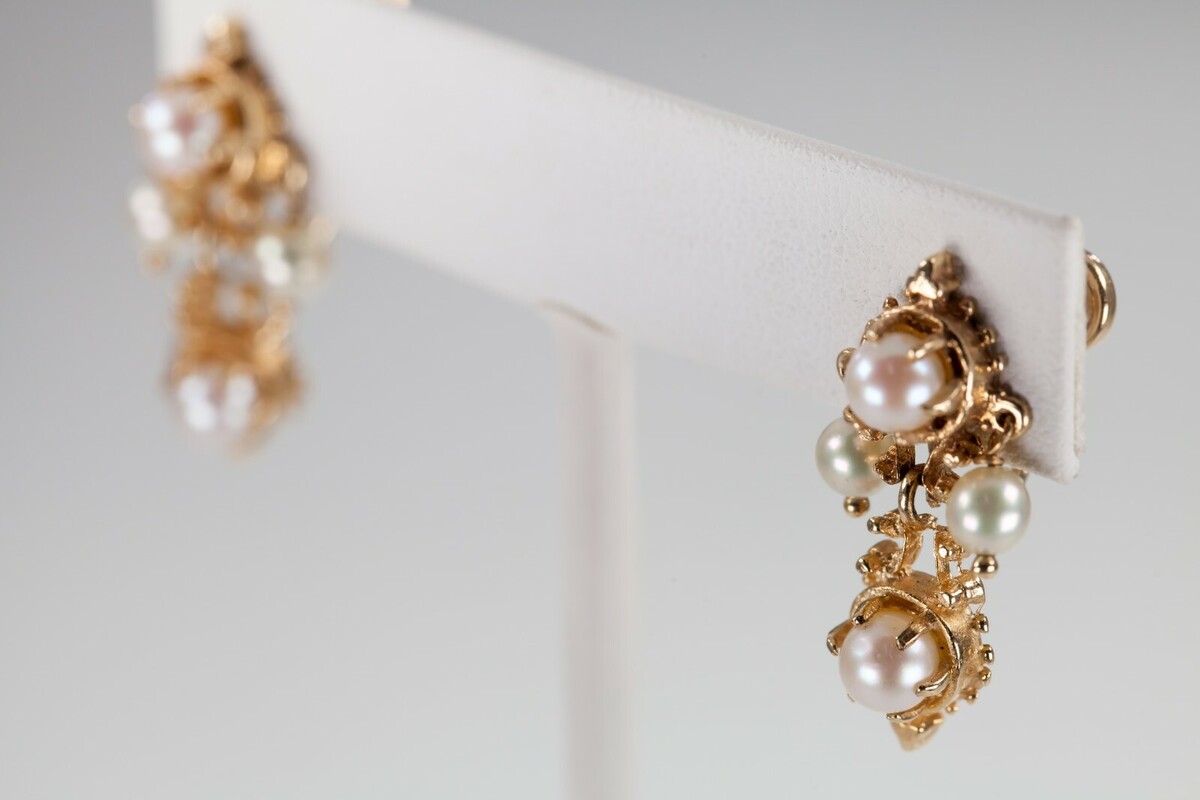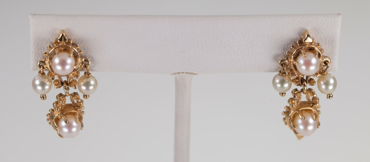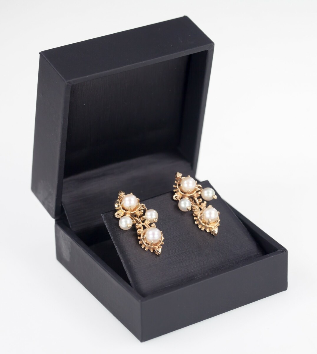 14k Gelbgold Perle Lang Anschraubbar Keine Post Ohrringe Atemberaubend
