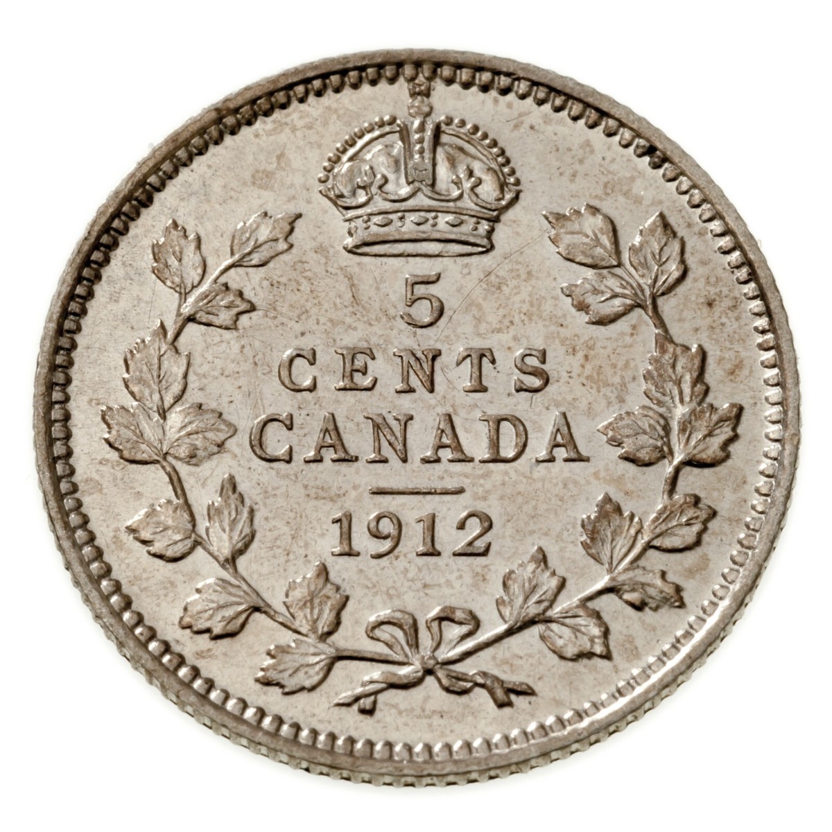 Moneda De Plata De 5 Centavos De Canada De 1912 En Condicion UNC, KM 22