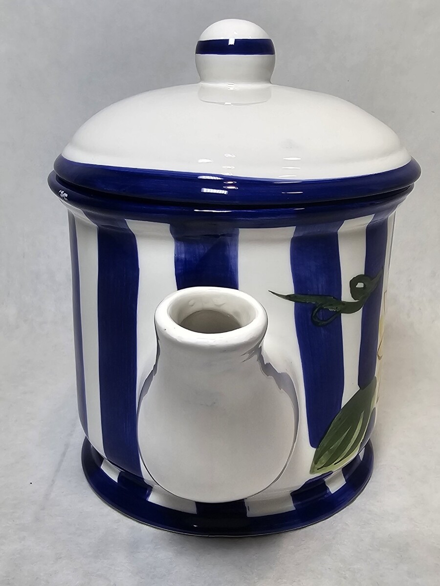 Ceramic Teapot Sunflower Blue White Striped and 46 similar items