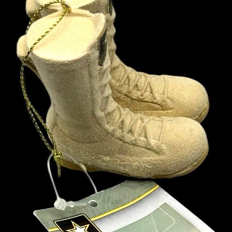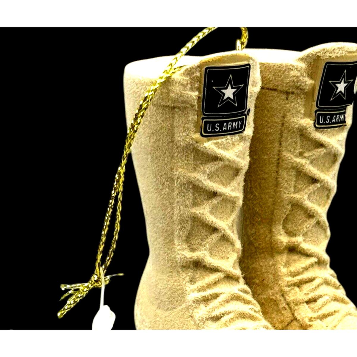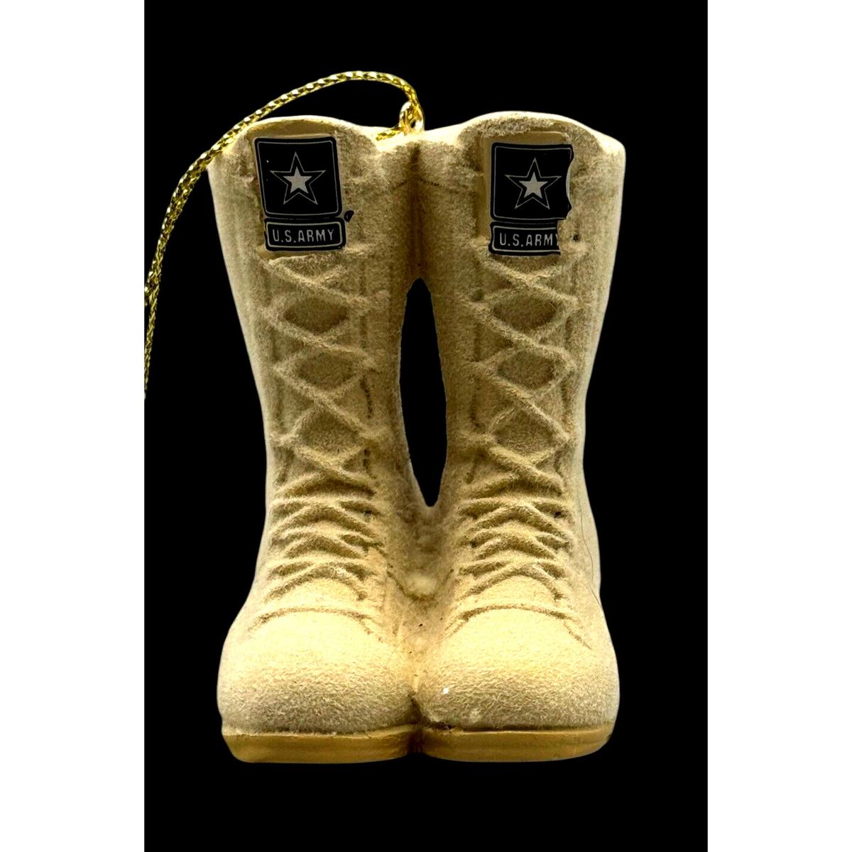 Kurt Adler Christmas Ornament US Army Flocked Combat Boots Desert Storm 3" New