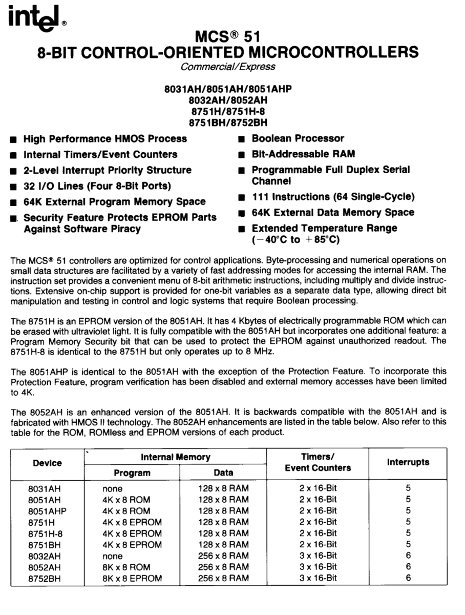 1X P8751BH Intel 8051 Microcontroller Ic 4K and 50 similar items