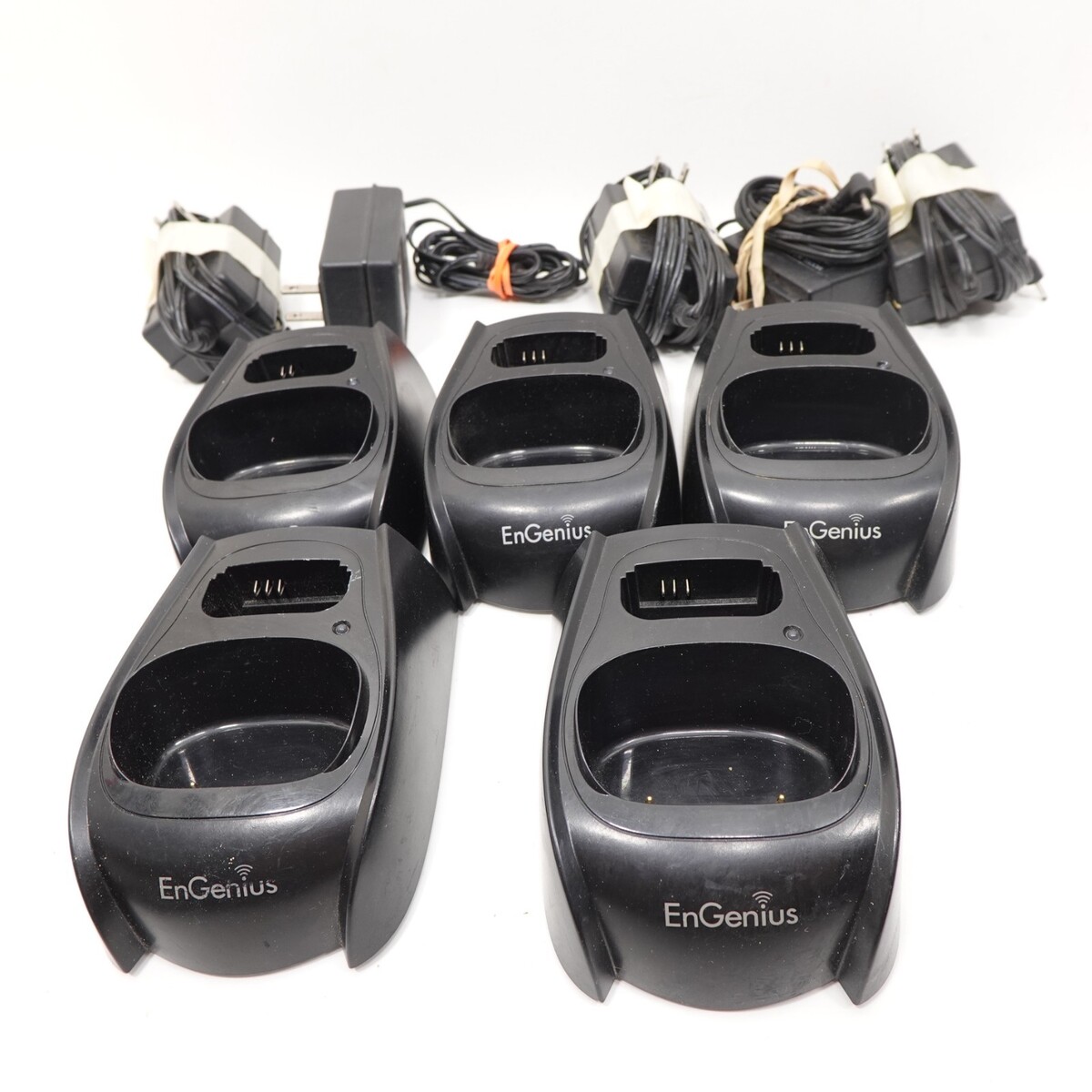 This listing is for a lot of 5 EnGenius charging cradles compatible with DuraFon 1X and 4X-HC (SP-922H) cordless phone handsets.