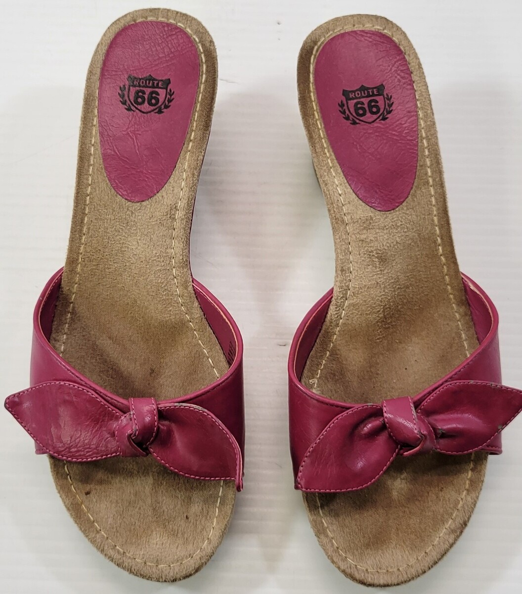 BG) Route 66 Women Sandal Slide Shoe Wedge Heel Fuchsia Bow Size 8M