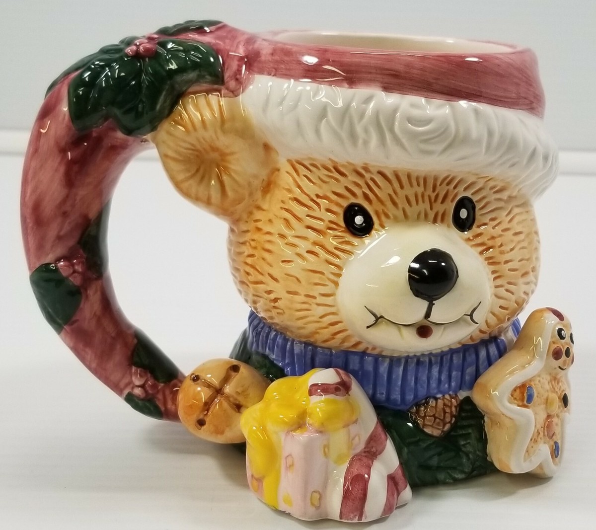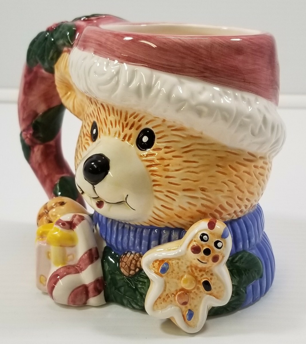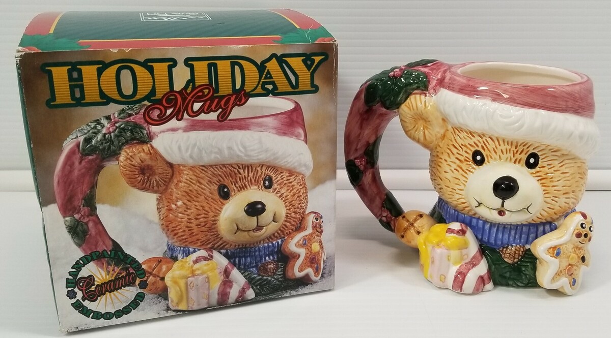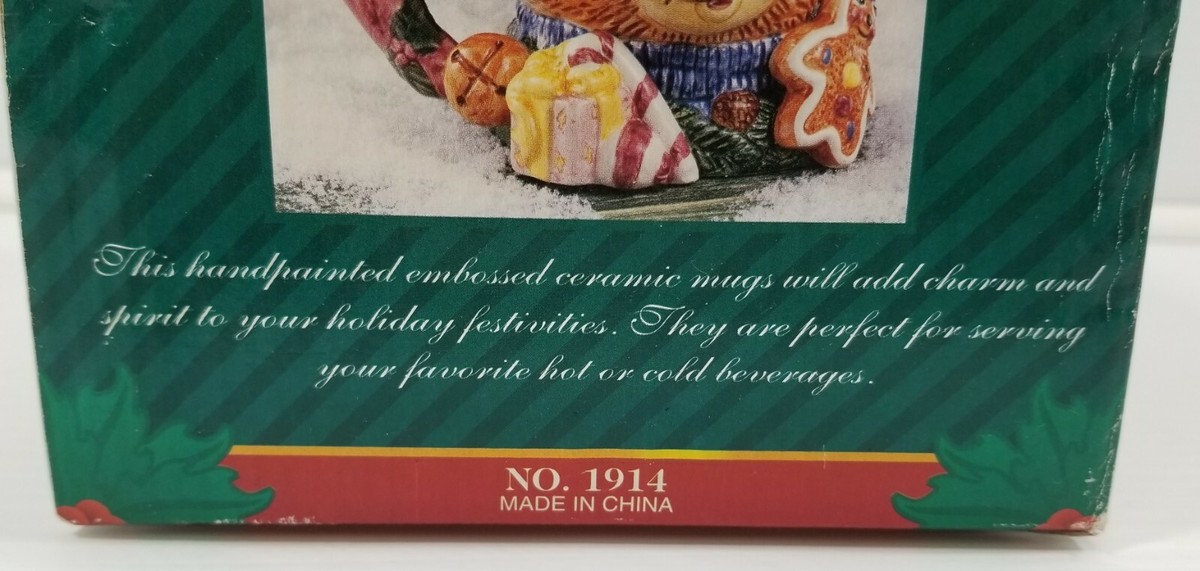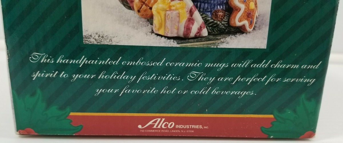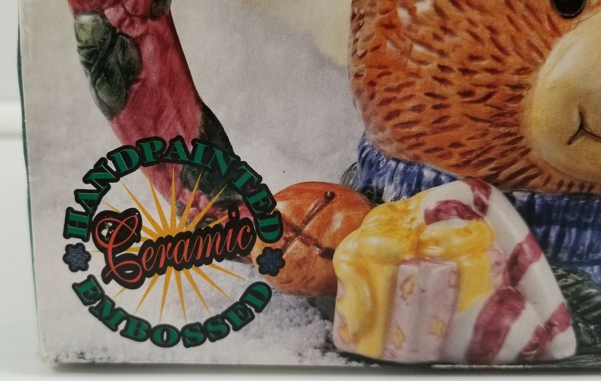 Alco Industries Teddy Bear Christmas Handpainted Embossed Ceramic Mug No. 1914
