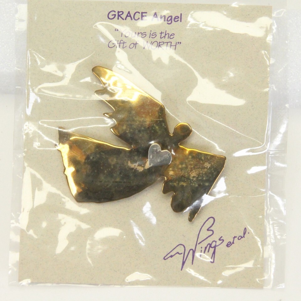 Brass Grace Angel Pin Brooch with Heart NEW by Wings