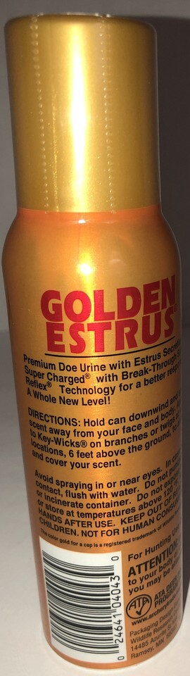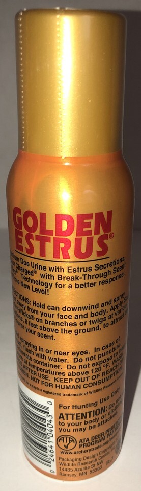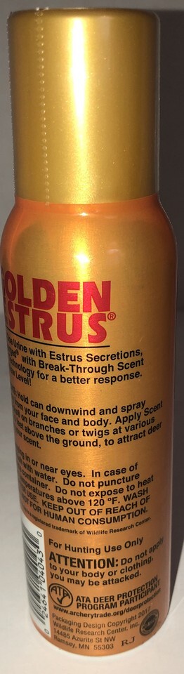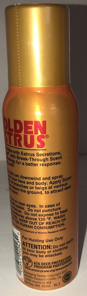 Wildlife Research Centers WRC Golden Estrus, Spray Can Scent Reflex 1 ea 3oz. Can. Condition is "New". Shipped with USPS First Class.