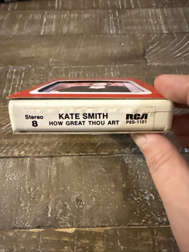 The Kate Smith "How Great Thou Art" 8-track tape is a vintage music format featuring the artist's greatest hits. This nostalgic product allows listeners to enjoy Kate Smith's classic songs in the 8-track cartridge format, experiencing the music in a unique and retro way. Perfect for music enthusiasts or collectors looking to add a piece of music history to their collection.
