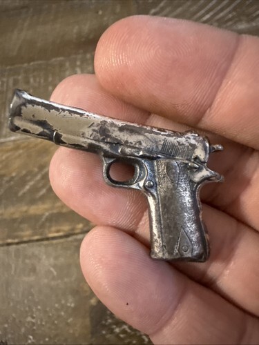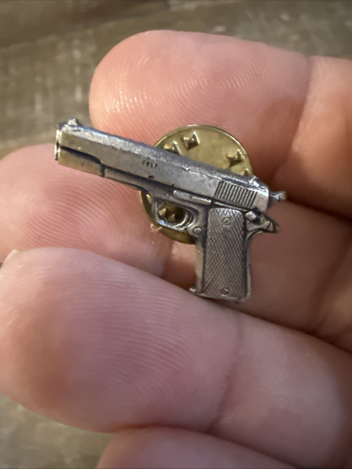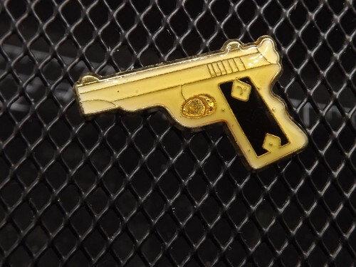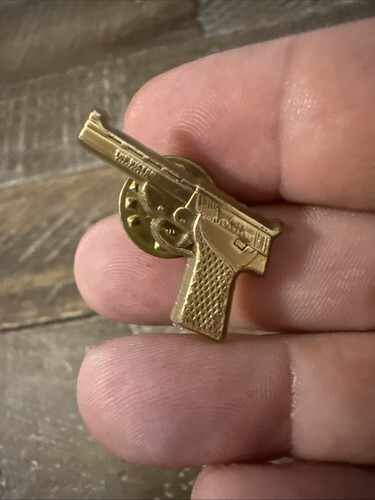 The "Unknown Small Pistol Gun Pin" is a unique and potentially rare collectible pinback. The design of a small pistol gun adds a controversial and edgy element to the pin, making it a standout piece for collectors interested in unusual and eclectic items. With its compact size, this pin would be a versatile accessory to add to a collection of pinbacks or a unique addition to a pin collection focusing on other collectible pinbacks.