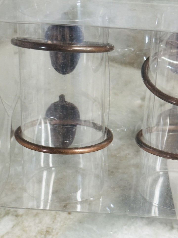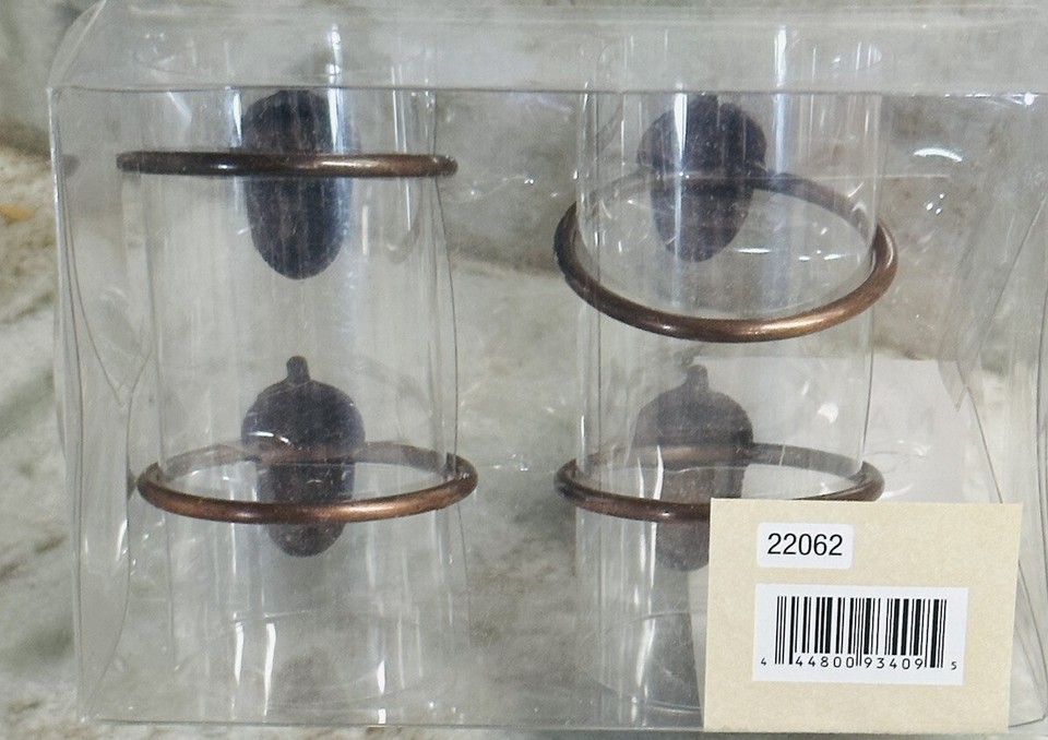 Add a touch of elegance to your table setting with this set of four Acorn Napkin Rings. The brass rings feature a beautiful beaded design and an oblong shape that will complement any table decor. Perfect for all occasions, these rings are sure to impress your guests. The rings come in a set of four and are brand new with tags.. ShipN24Hours. Inventory Location 38 in MW720/2in 3251, , 8100 (1), 3 Bay Warehouse (1st Shelf).