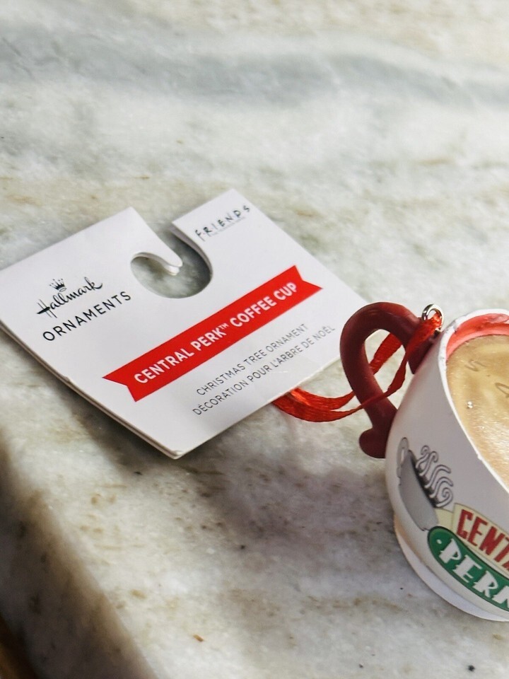 Take a walk down memory lane with this fun "Friends" ornament shaped like the latte mug design for Central Perk, the neighborhood coffeehouse where the show's main characters hang out.