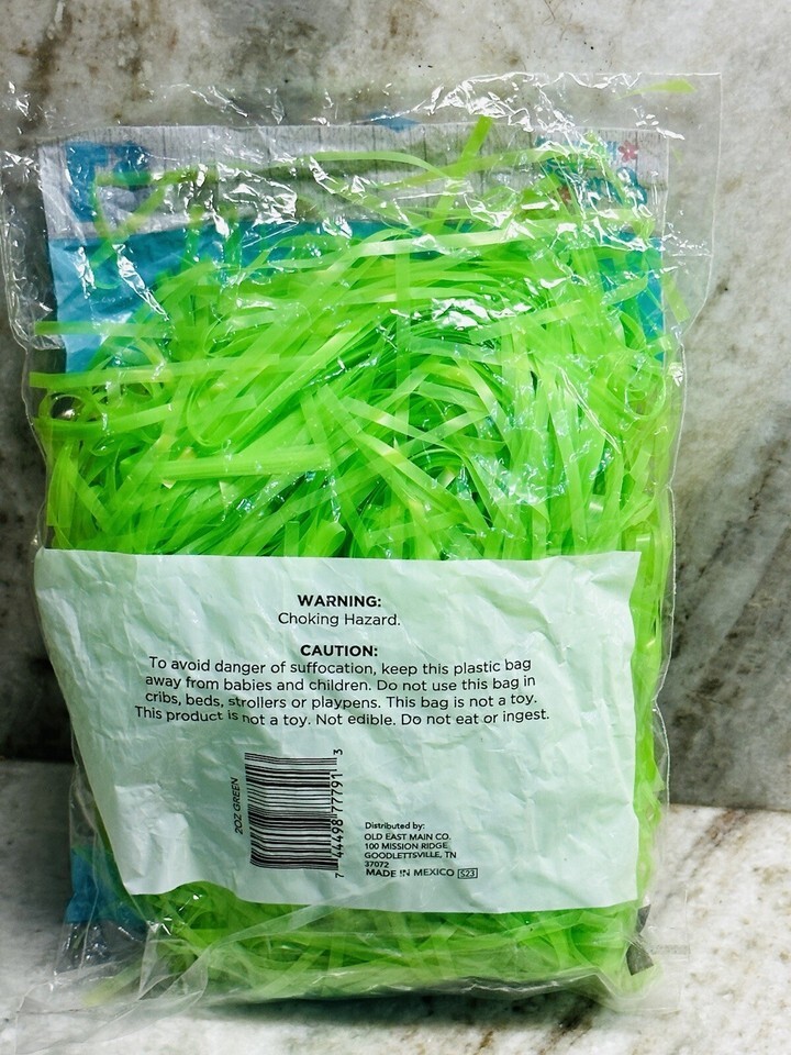 Happy Easter Green Iridescent Plastic Basket Filler Grass Bag 2oz/56.7gm