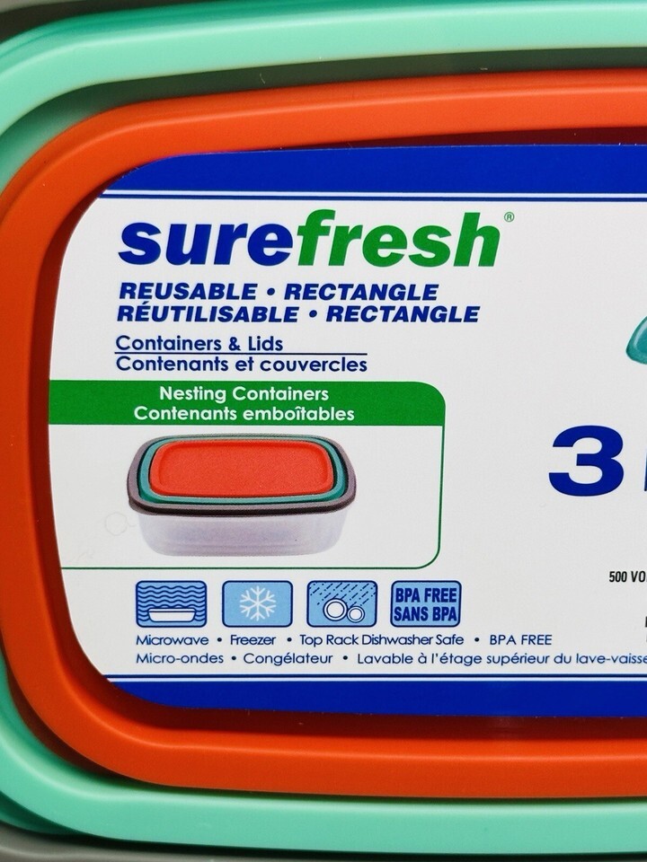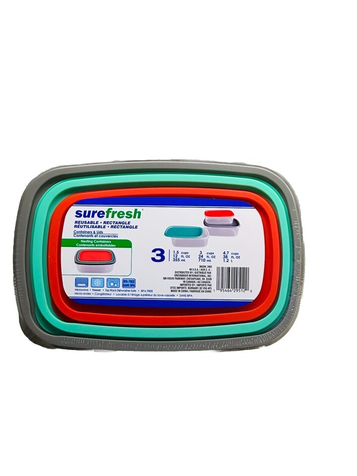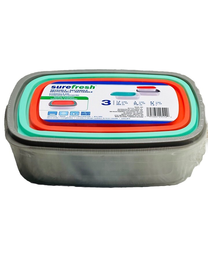 Surefresh Reusable Rectangle 3 Nesting Containers 12oz/24oz/38oz Micro/Freezer
