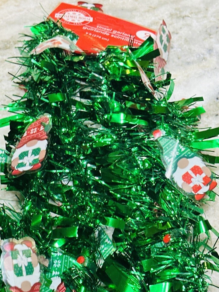 Add a touch of whimsy to your holiday decor with this 9ft green garland featuring adorable gnome decorations. Perfect for parties and gatherings, this Christmas House brand garland is made of tinsel and is sure to add some sparkle and charm to any space. Whether you're hanging it on your mantle or using it to decorate your front door, this gnome-themed garland is a fun and festive addition to your holiday decorations. Get into the holiday spirit with this cheerful and unique garland. ShipN24Hours. Inventory Location 7027