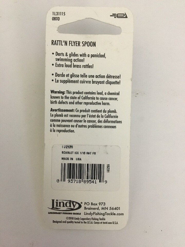 Lindy Rattl'N Flyer Spoon 1/16 OZ Scarlet FJ2120 BRAND NEW MODEL :FJ2120 1/16 OZ UPC: 093718895419 RARE - VINTAGE - COLLECTIBLE